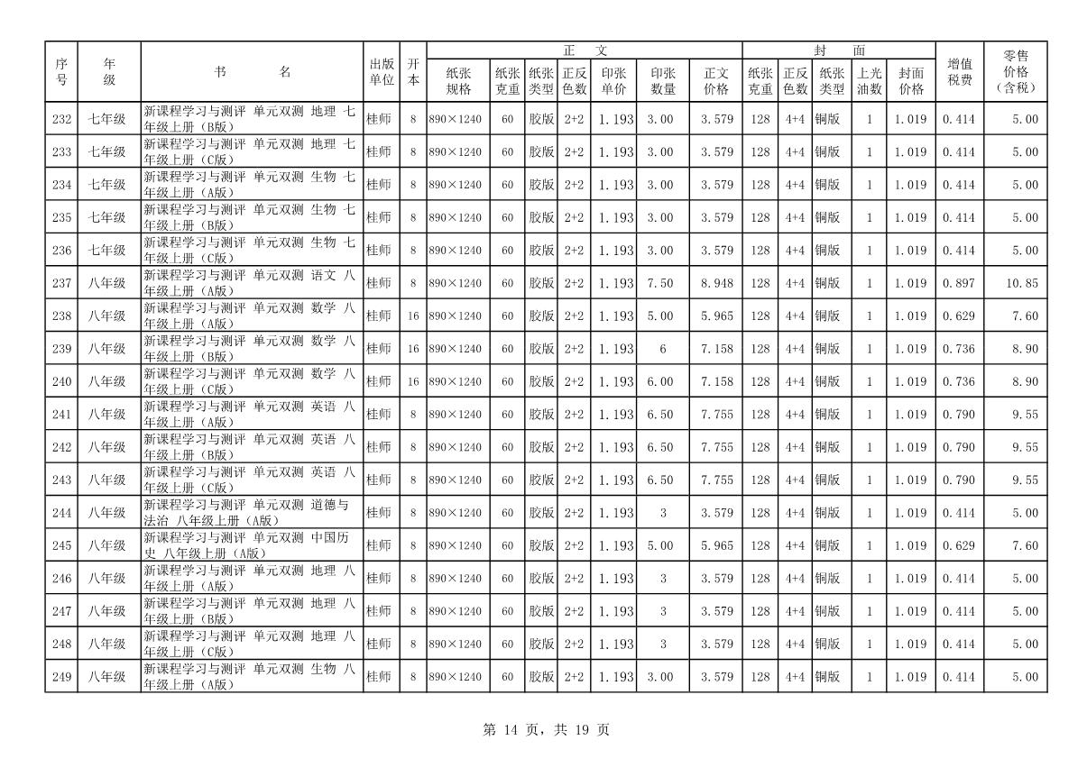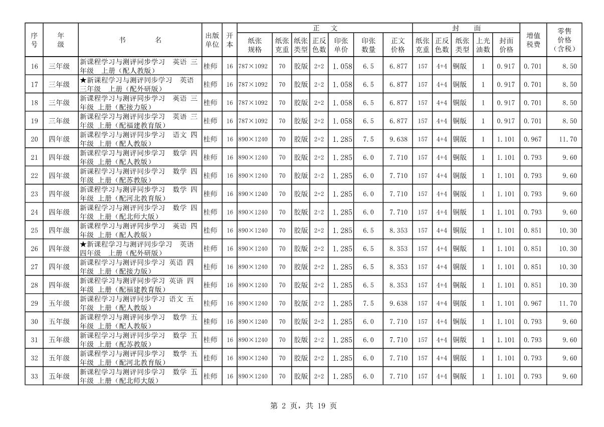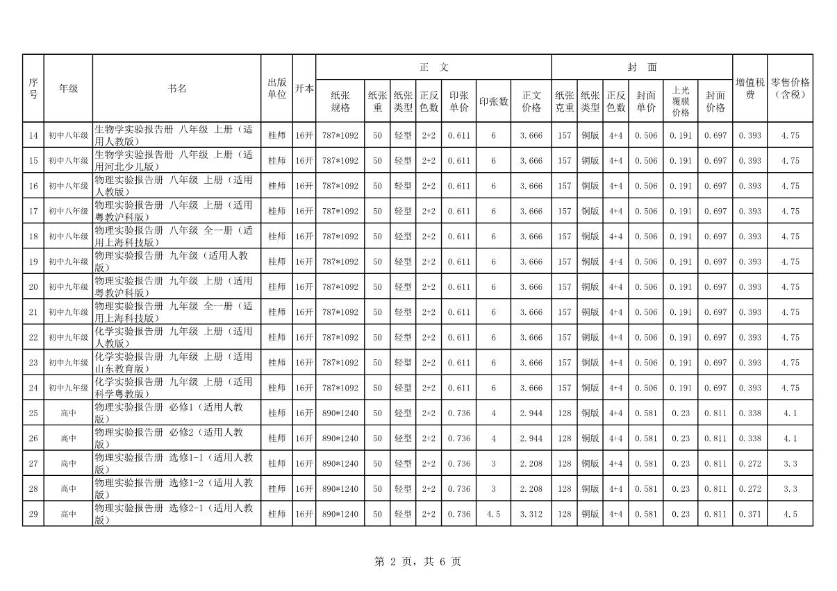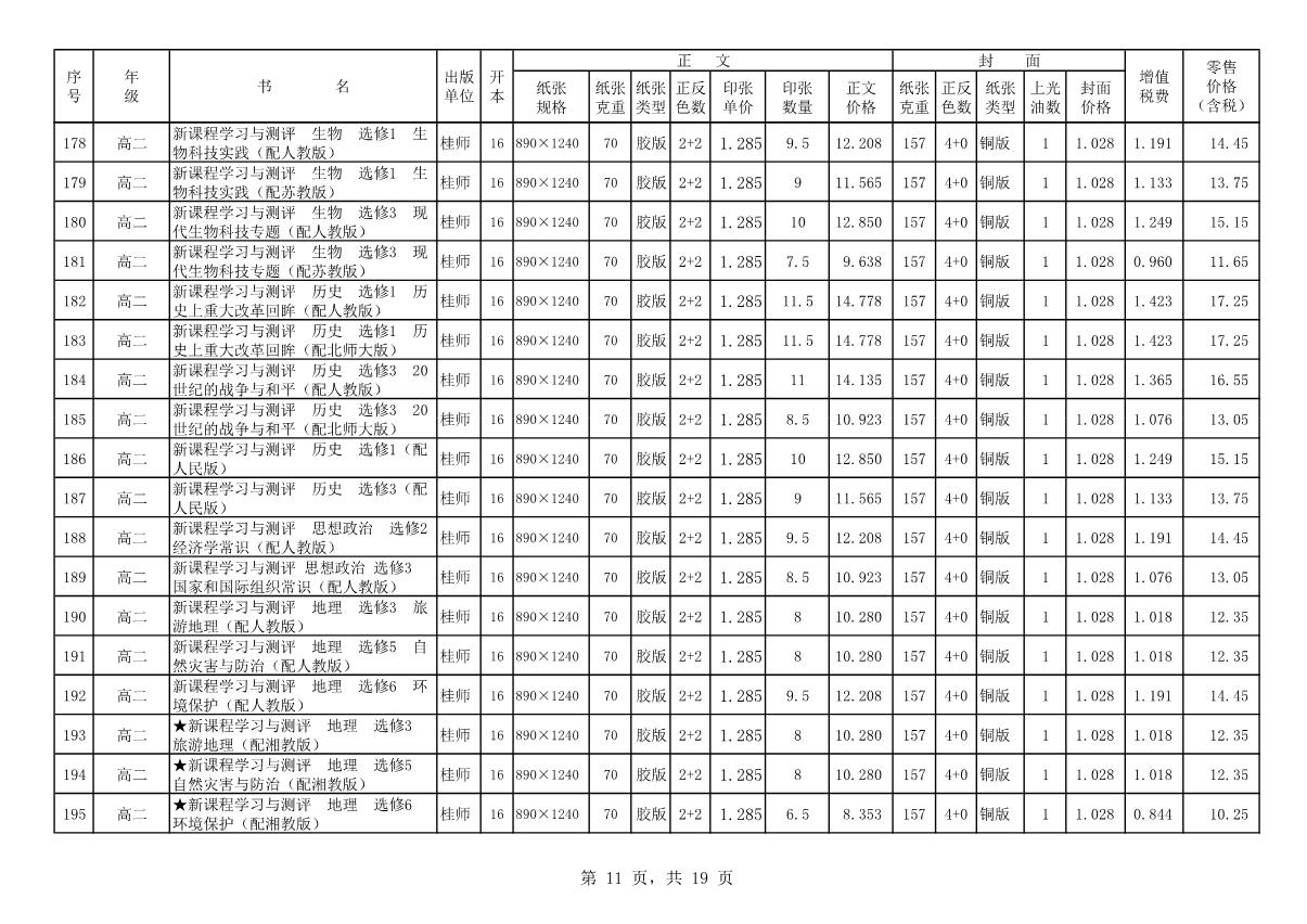 教材、教輔價格公示