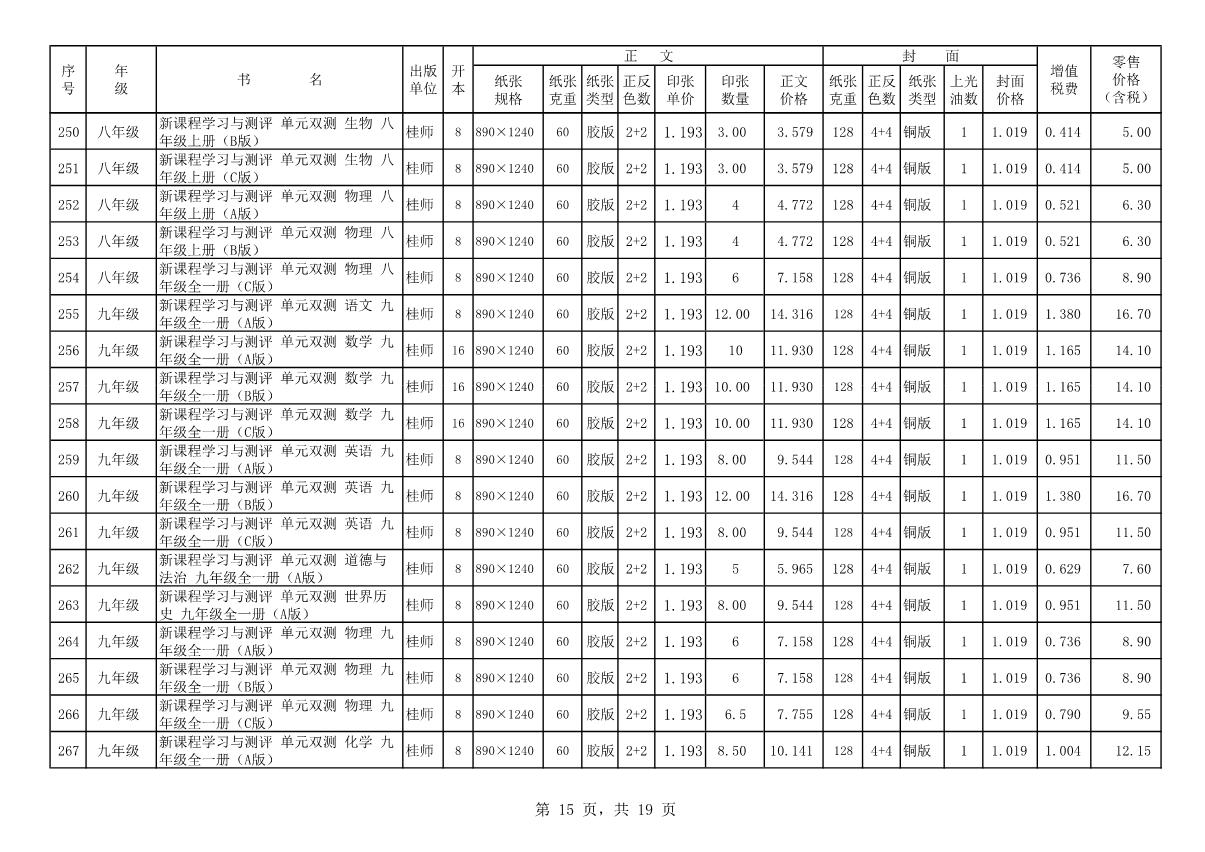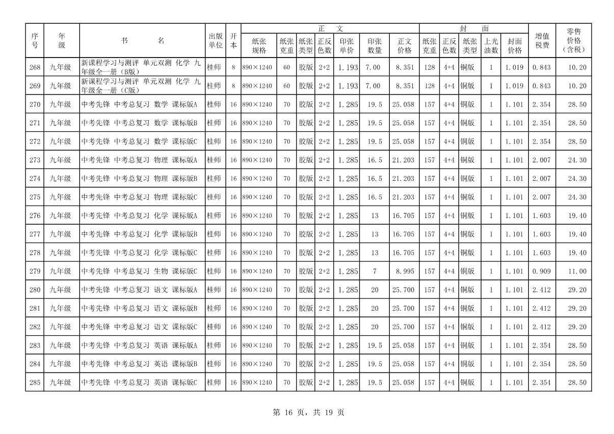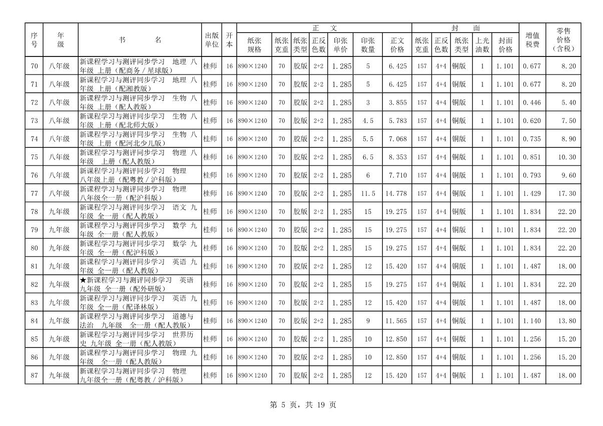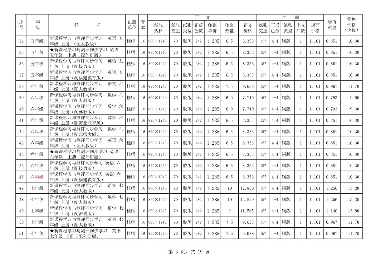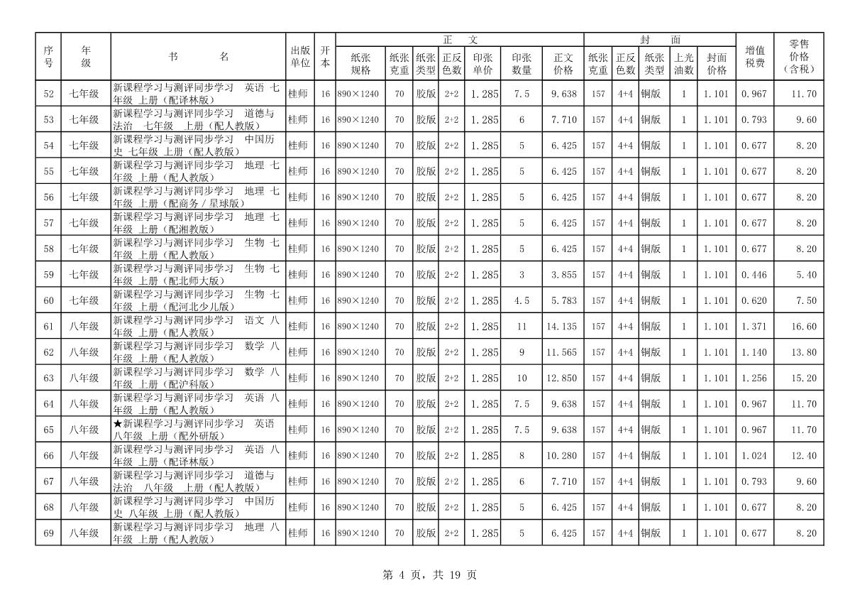 教材、教輔價格公示