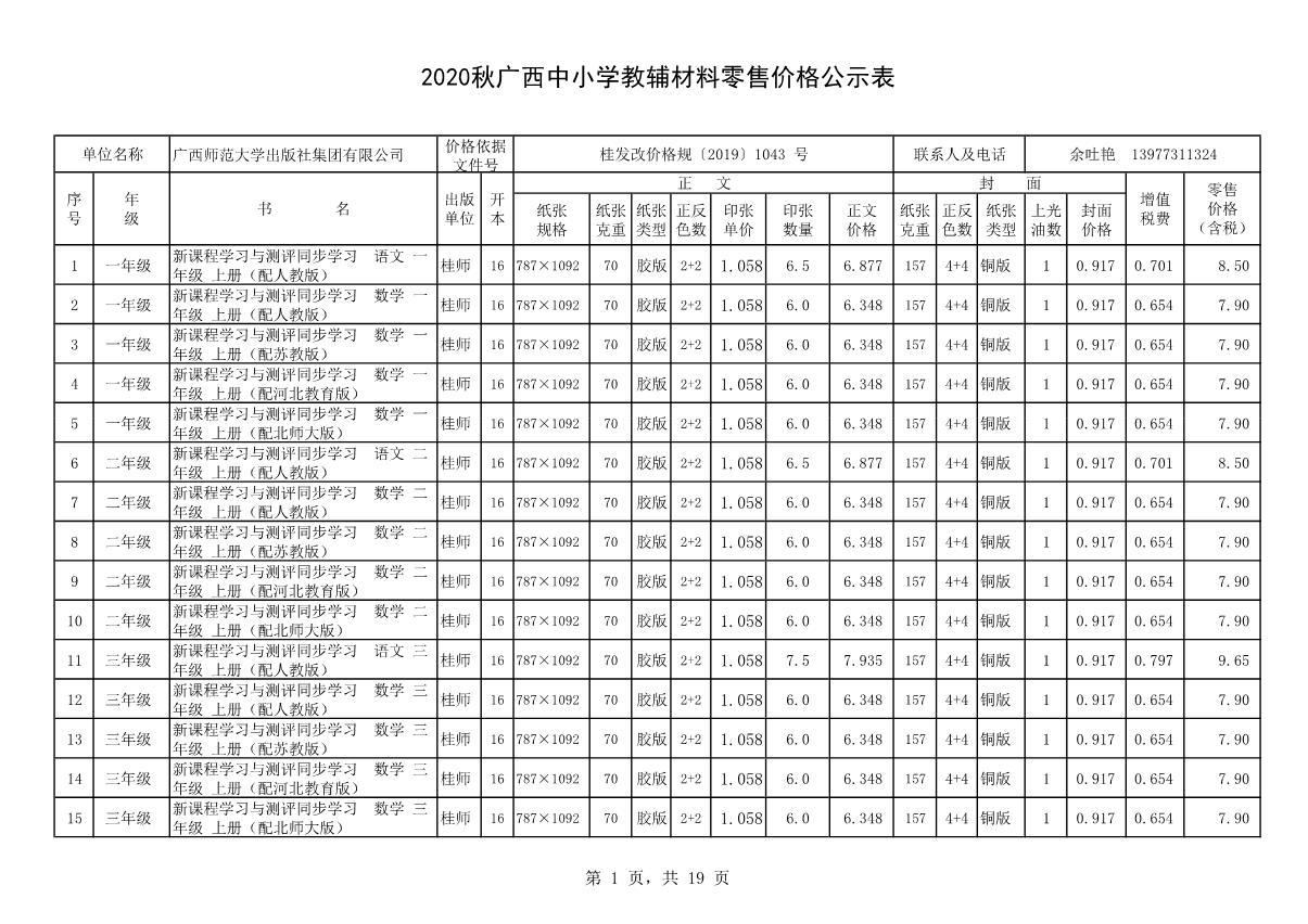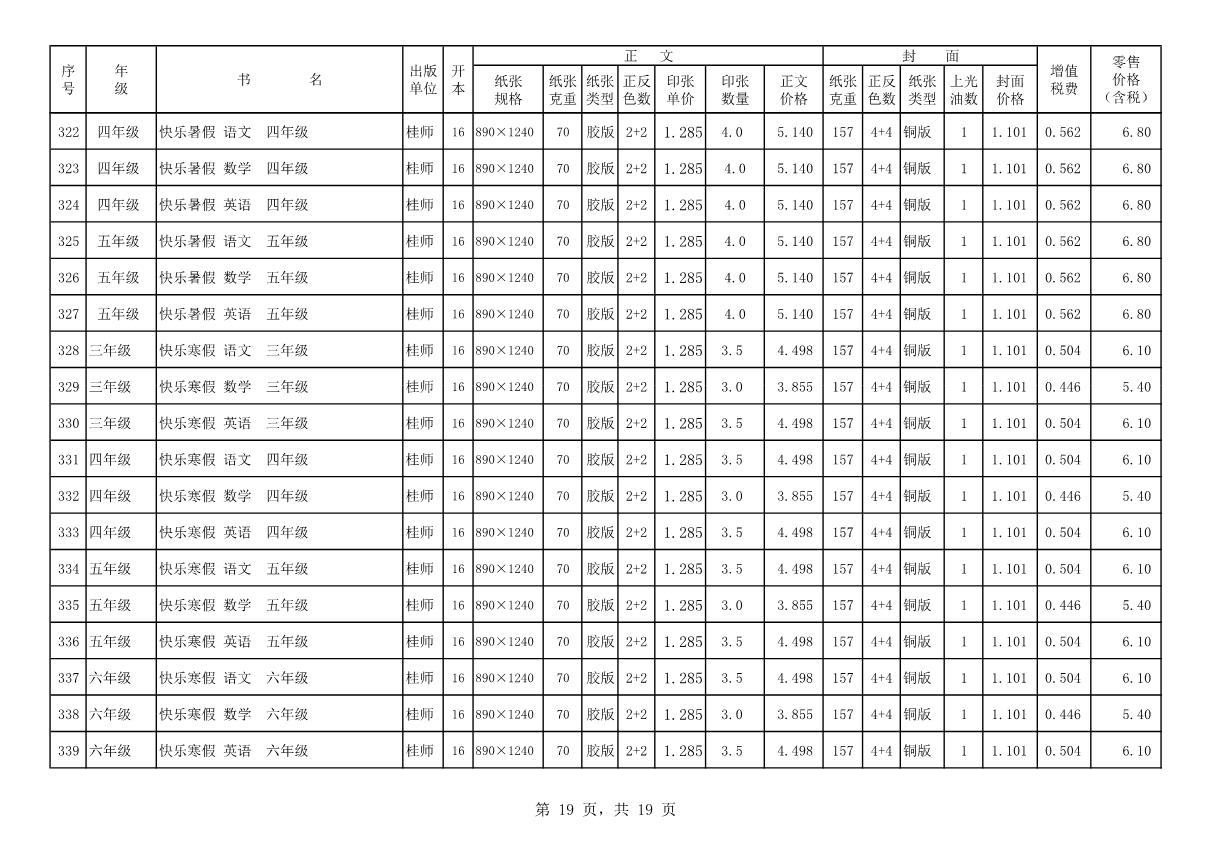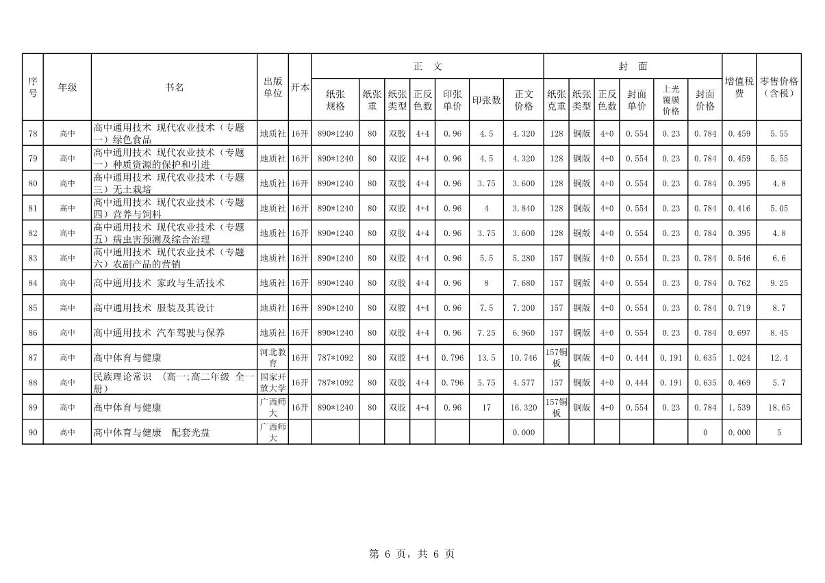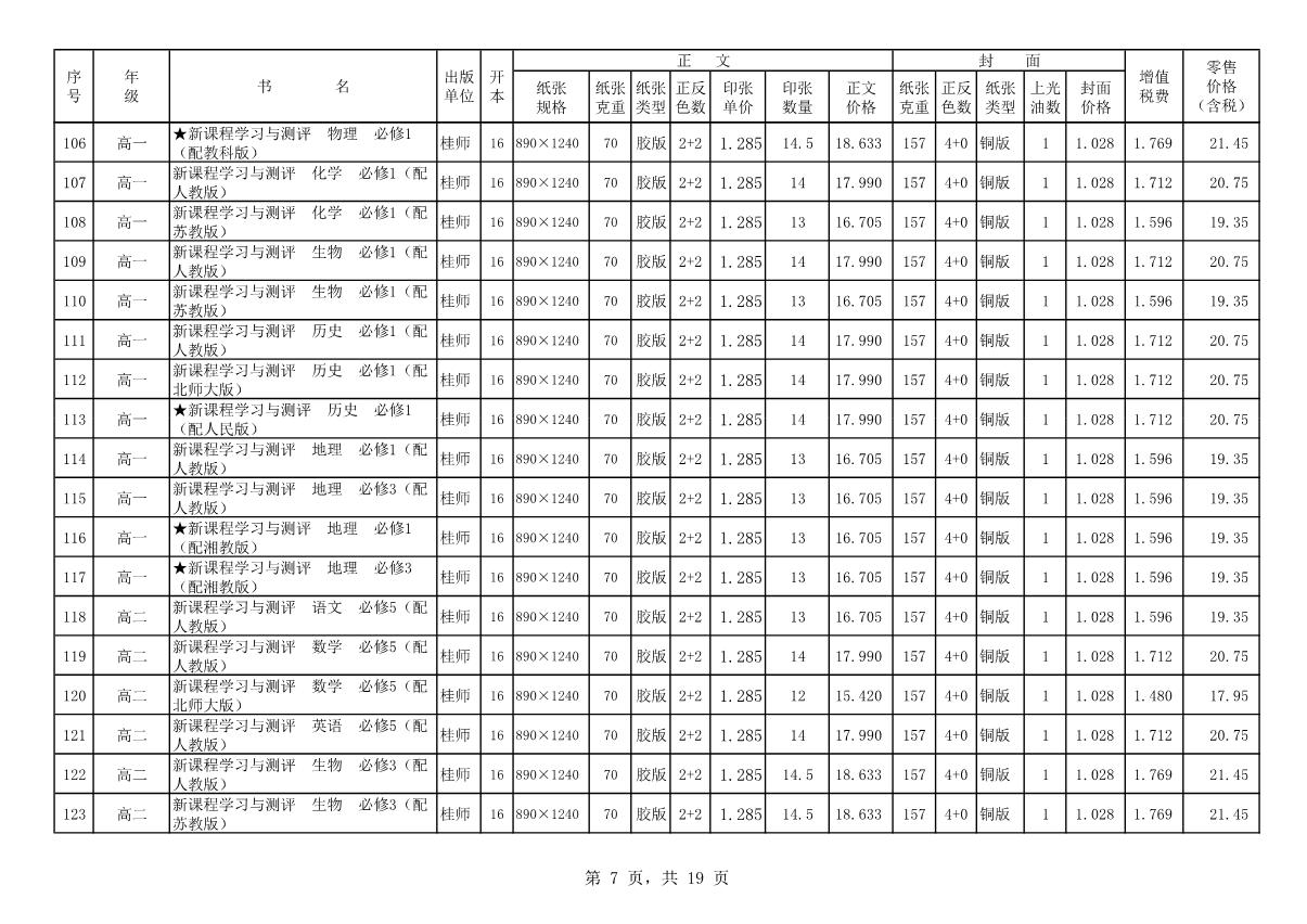 教材、教輔價格公示